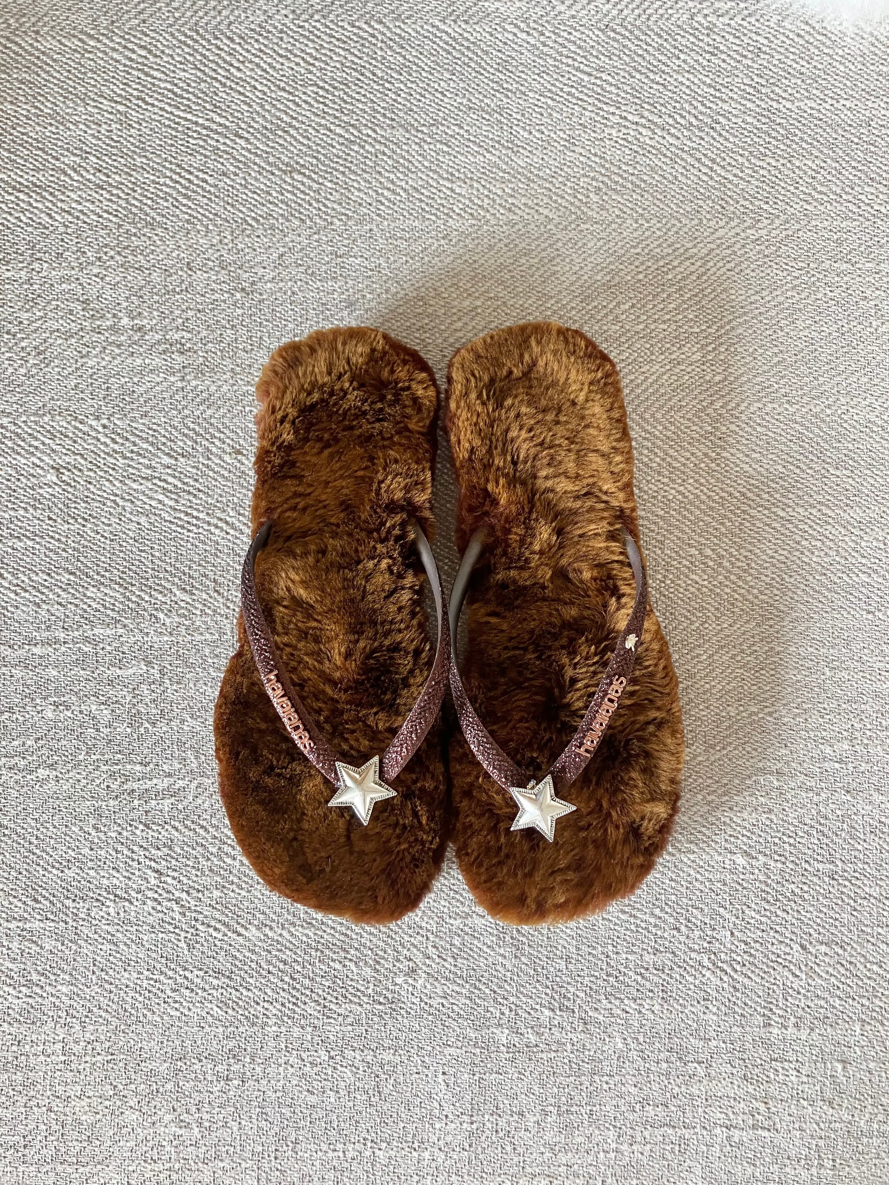 ハワイアナスのベースにオーストラリア産のリアルムートンの中敷がついて、フワフワな履き心地。