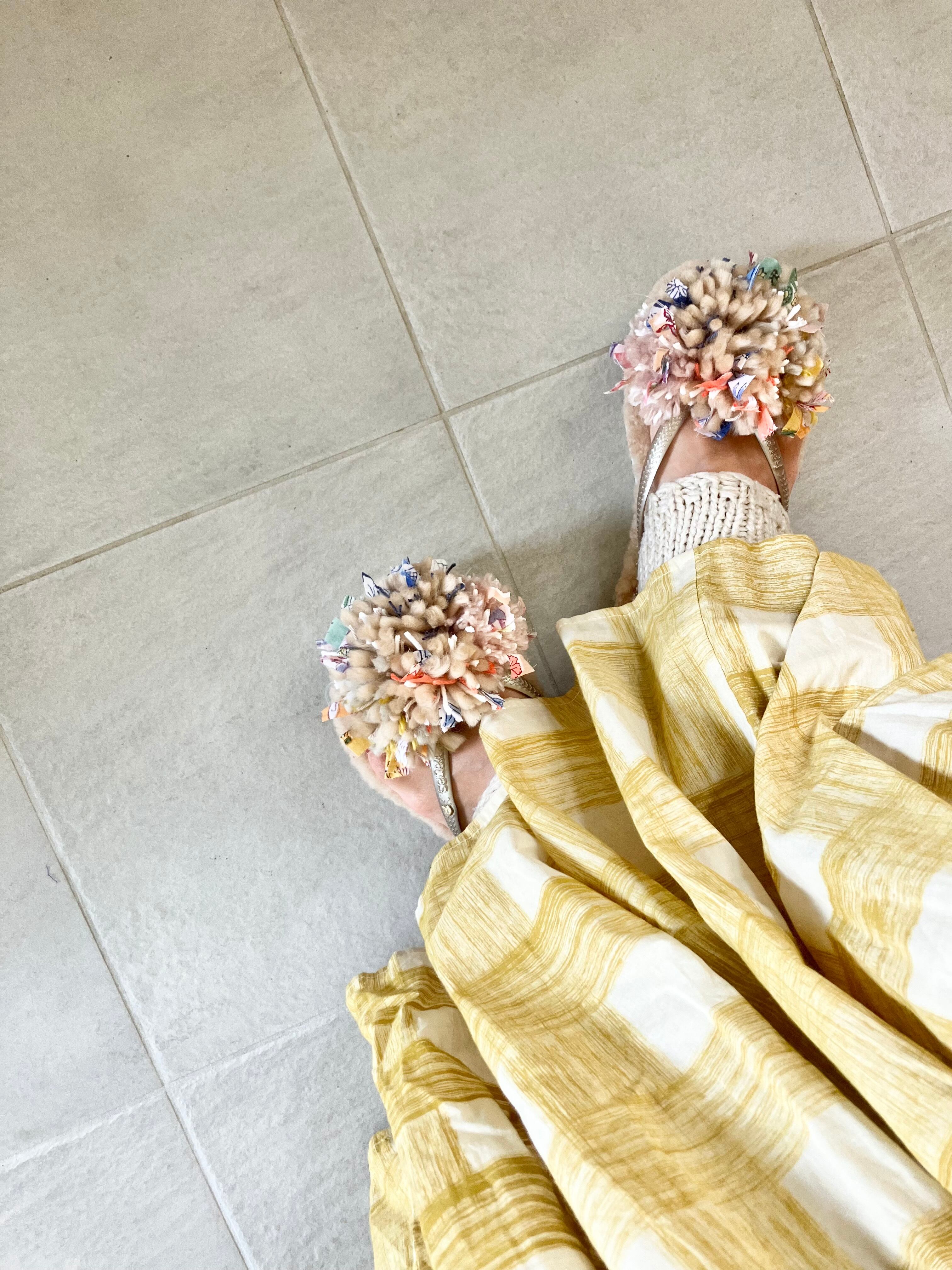 ハンドメイド商品ですので、中敷の貼りズレ等が若干ございますが、支障なくお履き頂けます。