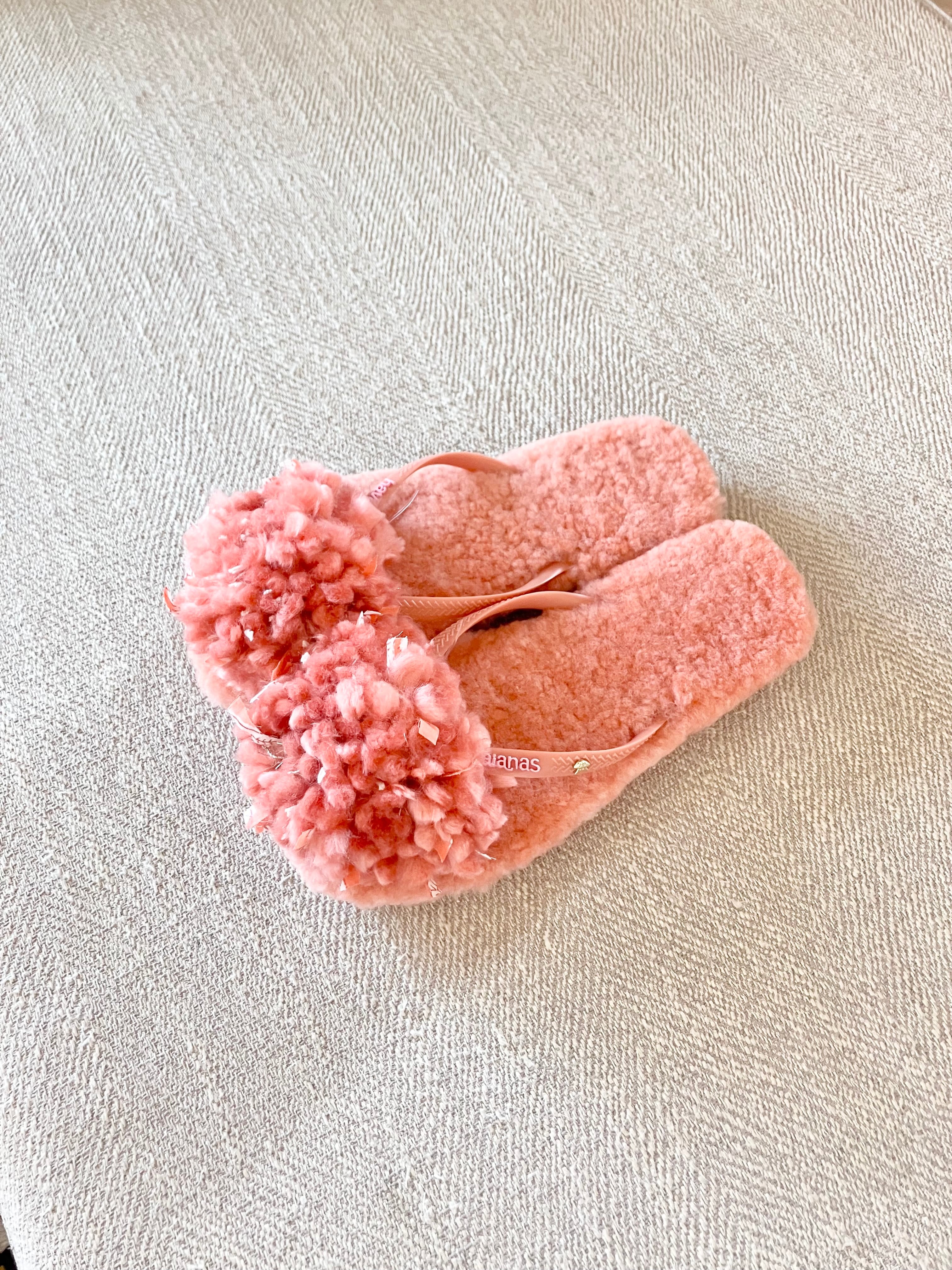ハワイアナスのベースにオーストラリア産のリアルムートンの中敷がついて、フワフワな履き心地。