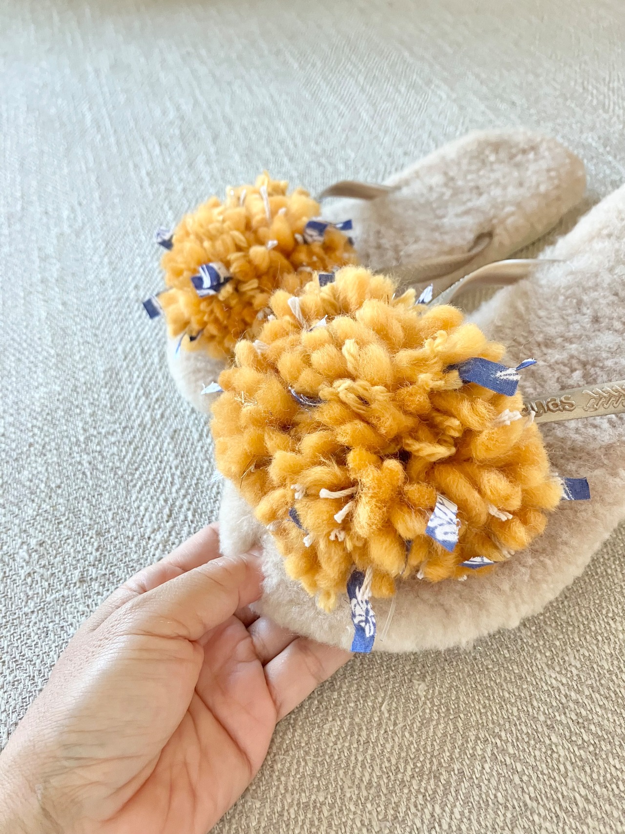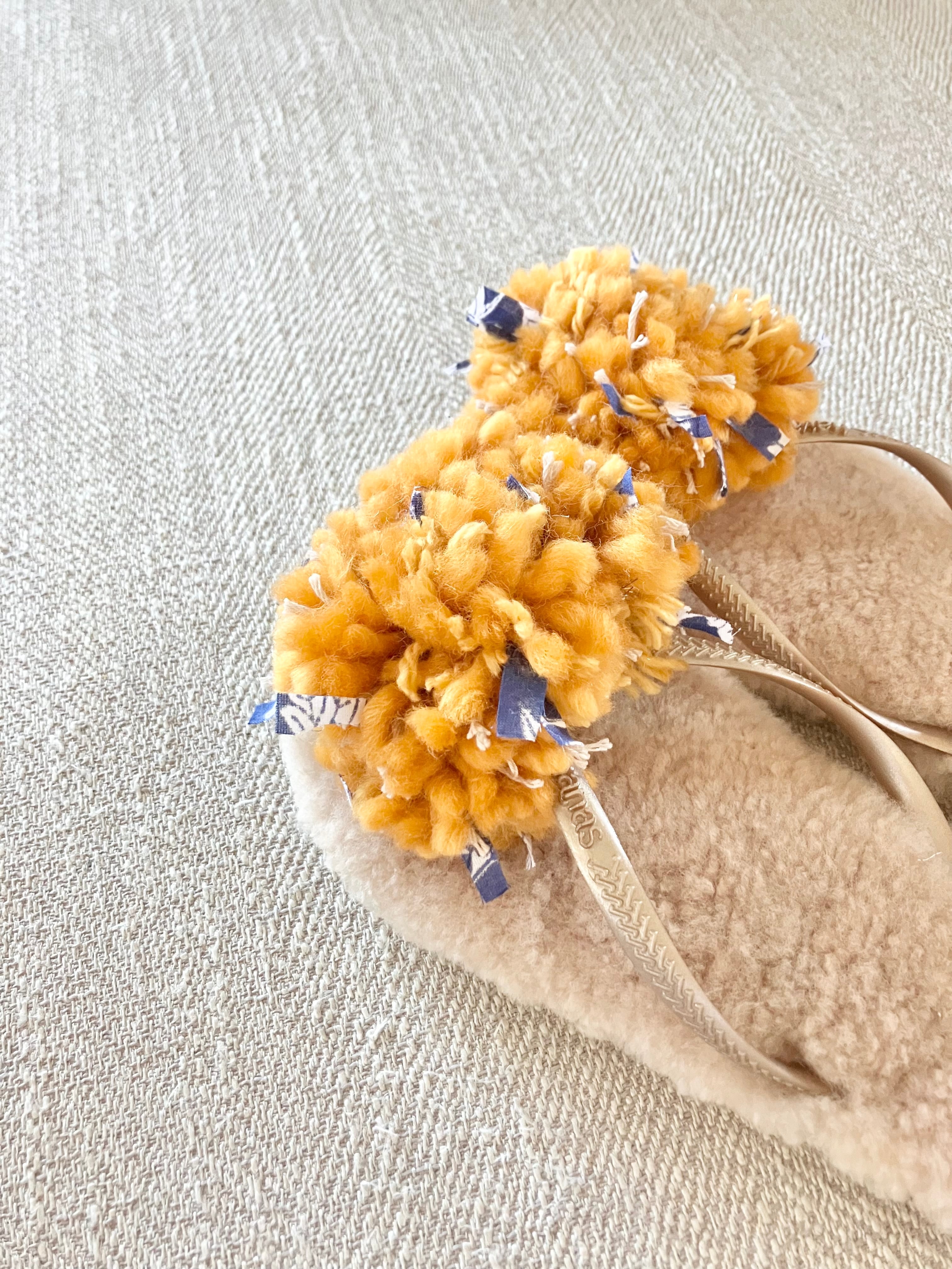 ボンボンは太さの違う、橙色にも近いオレンジ味のあるイエローに、