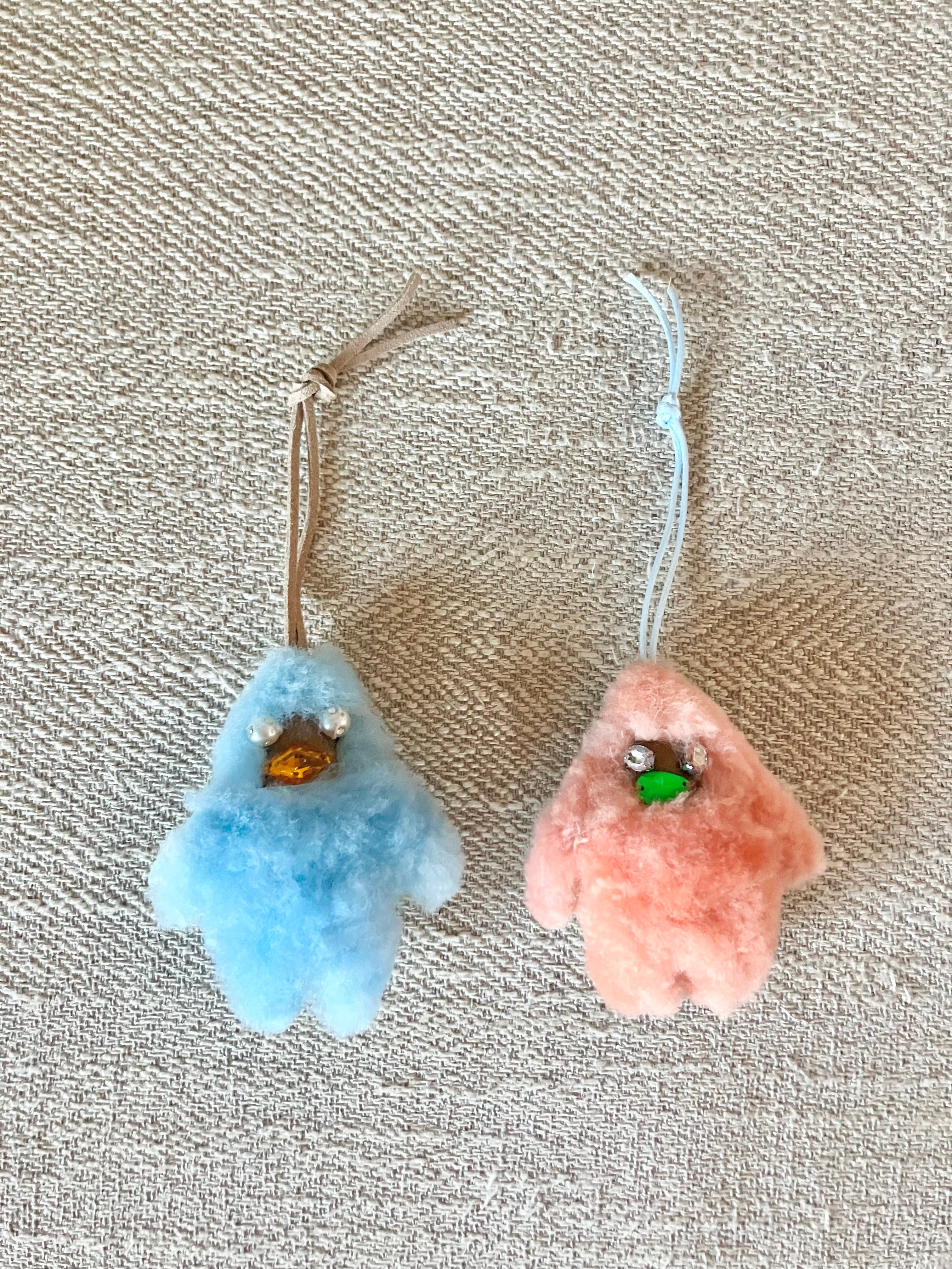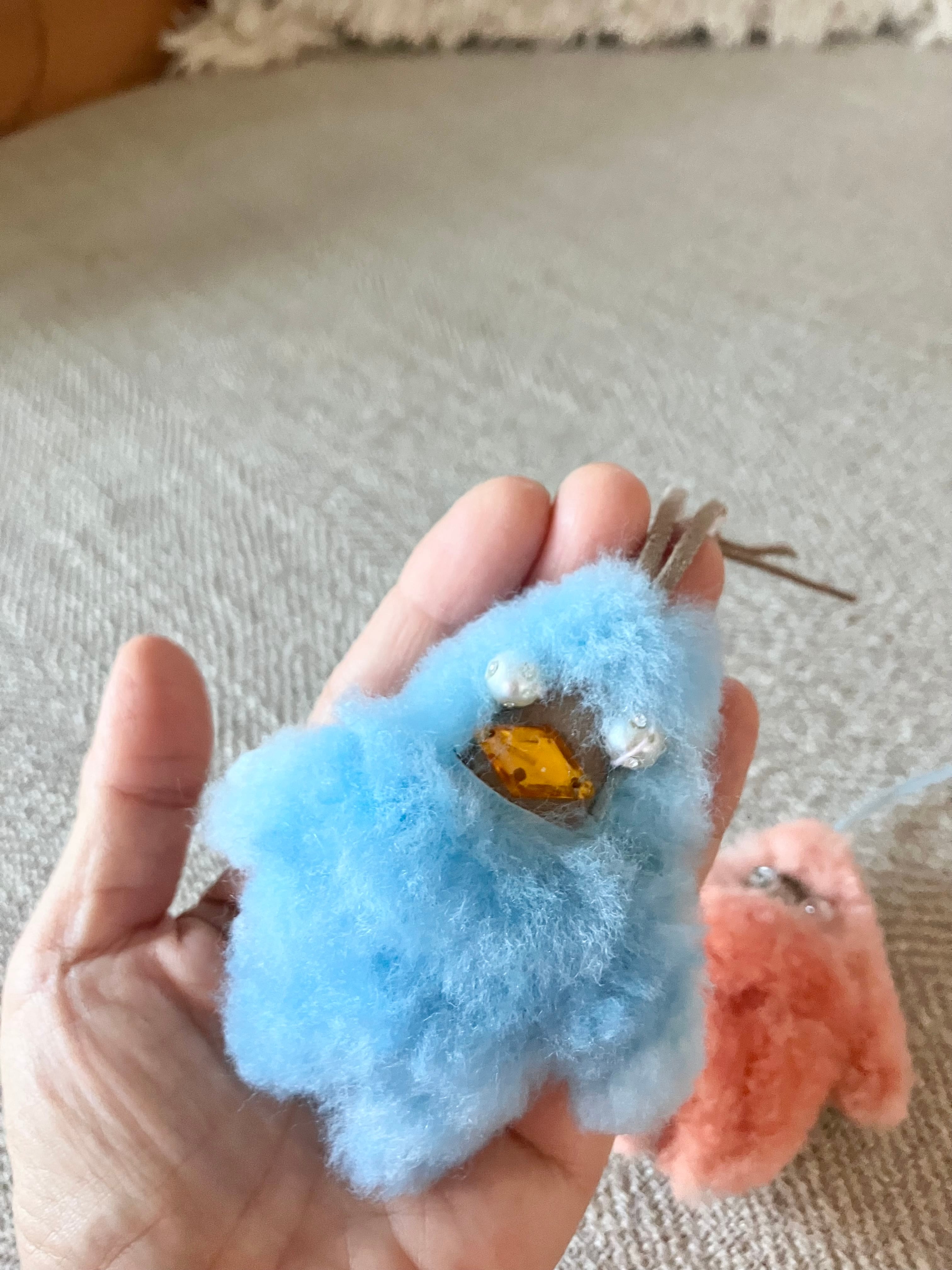 ムートンのハギレを使って、1匹1匹丁寧に作りました。