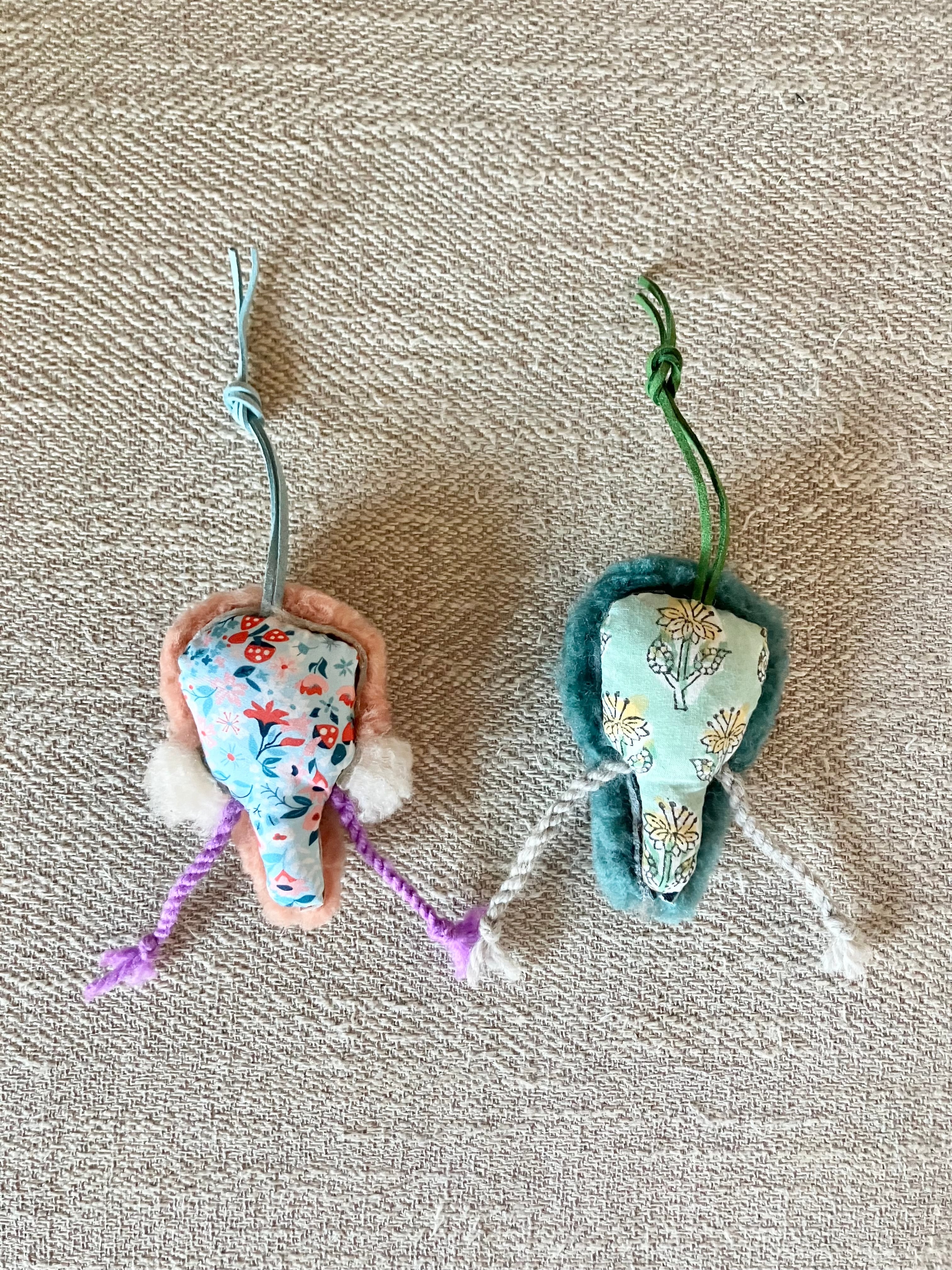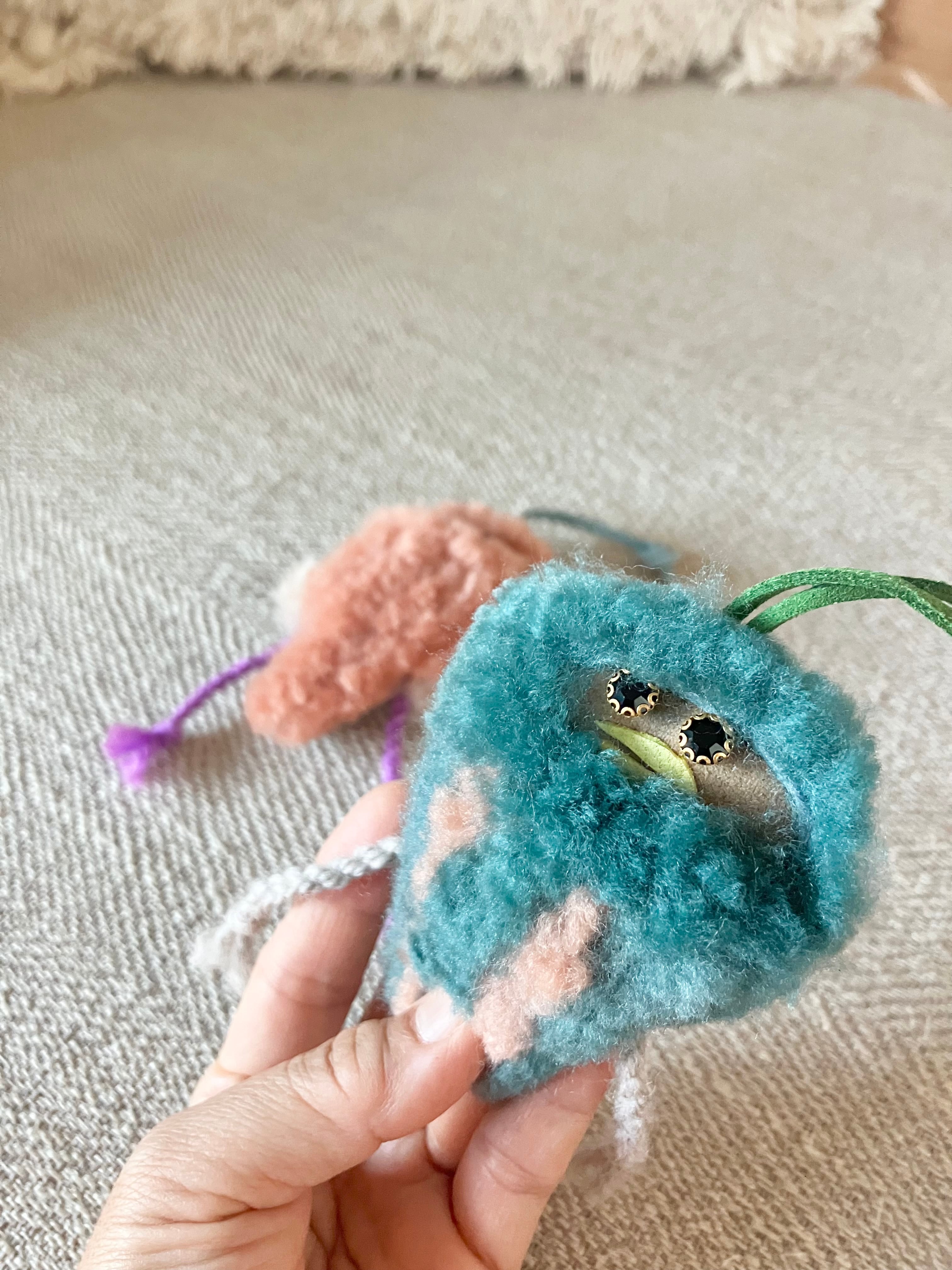 ムートンのハギレを使って、1匹1匹丁寧に作りました。