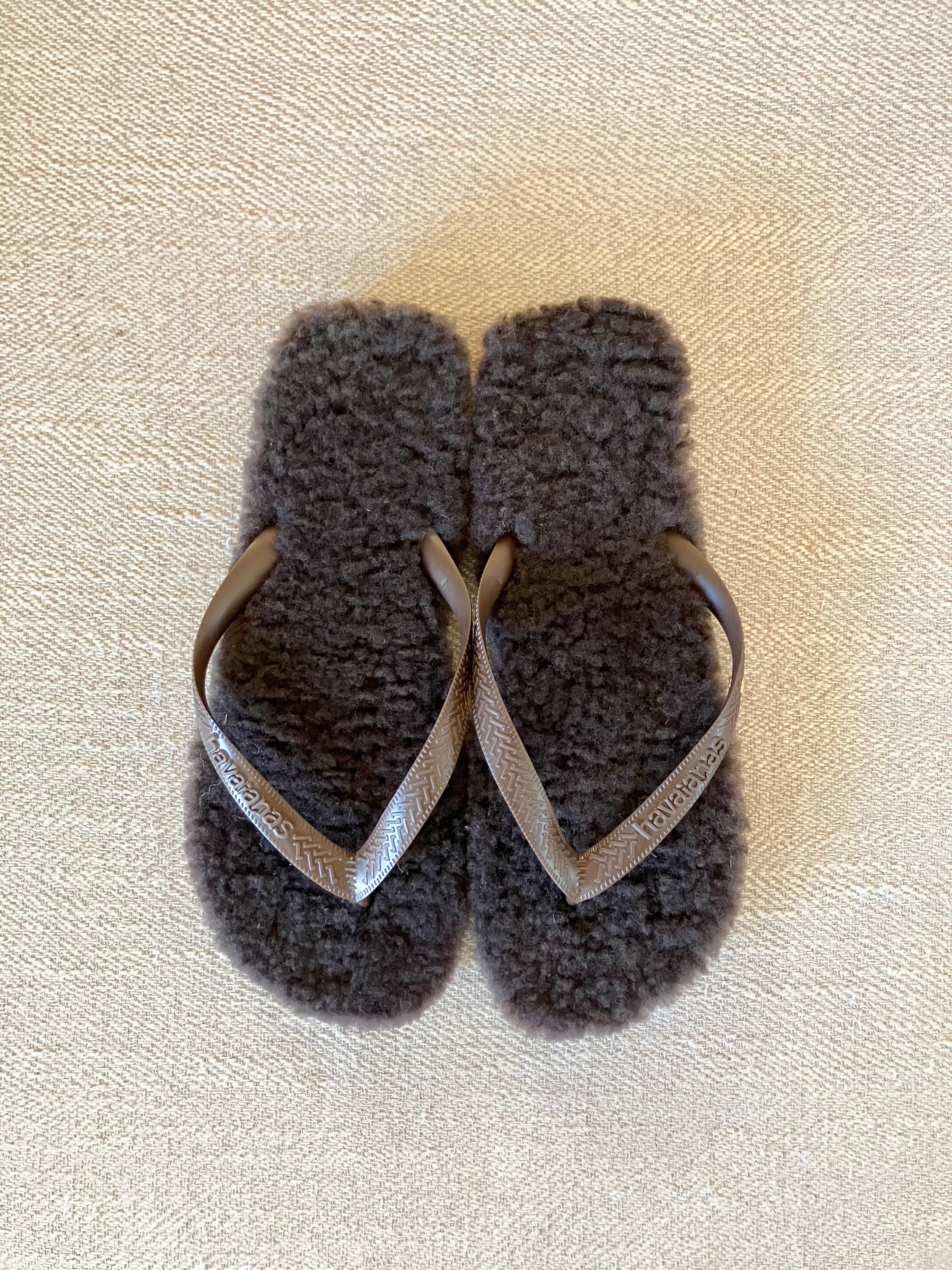 ハワイアナスのベースにオーストラリア産のリアルムートンの中敷がついて、フワフワな履き心地。