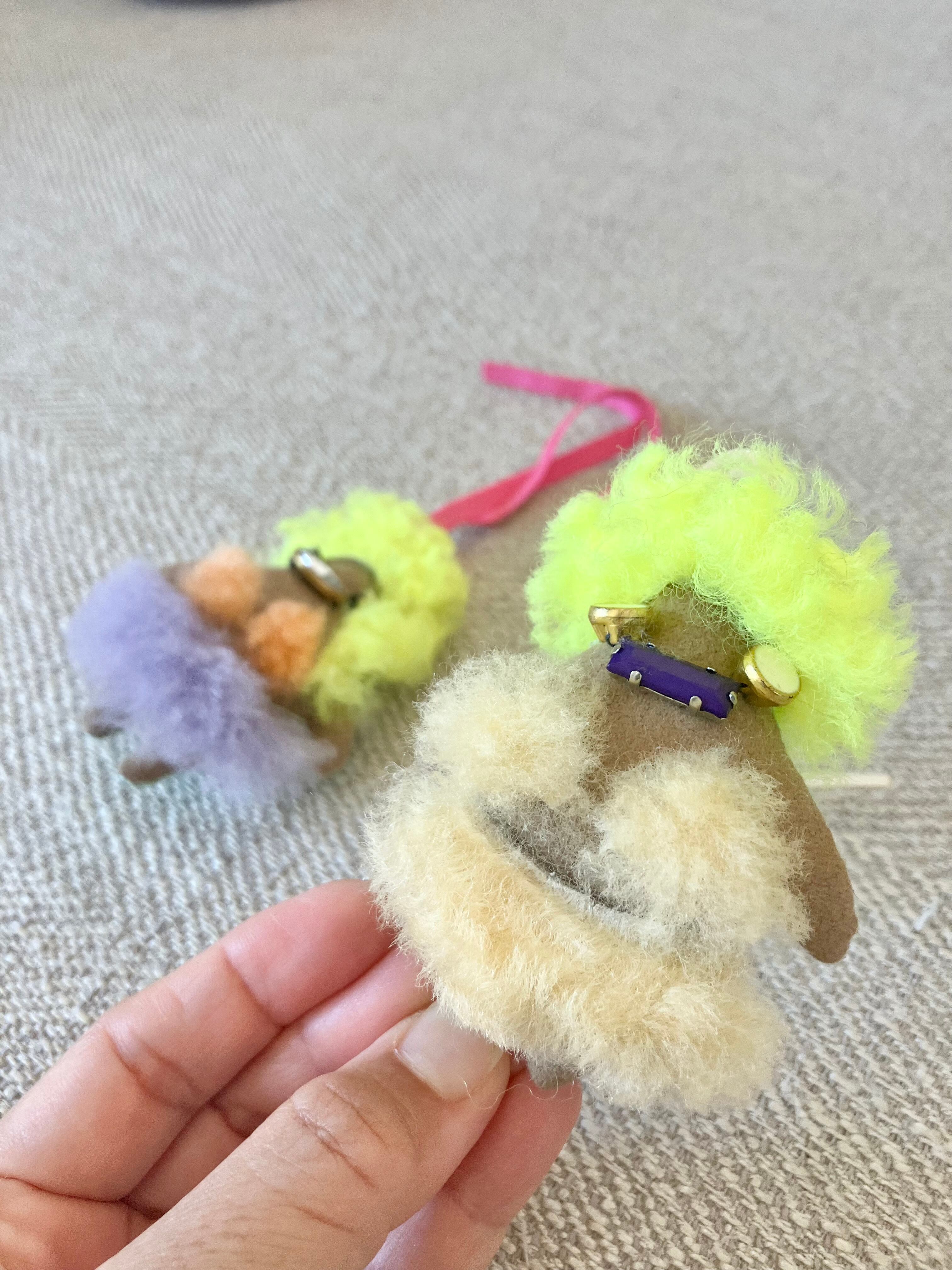ムートンのハギレを使って、1匹1匹丁寧に作りました。