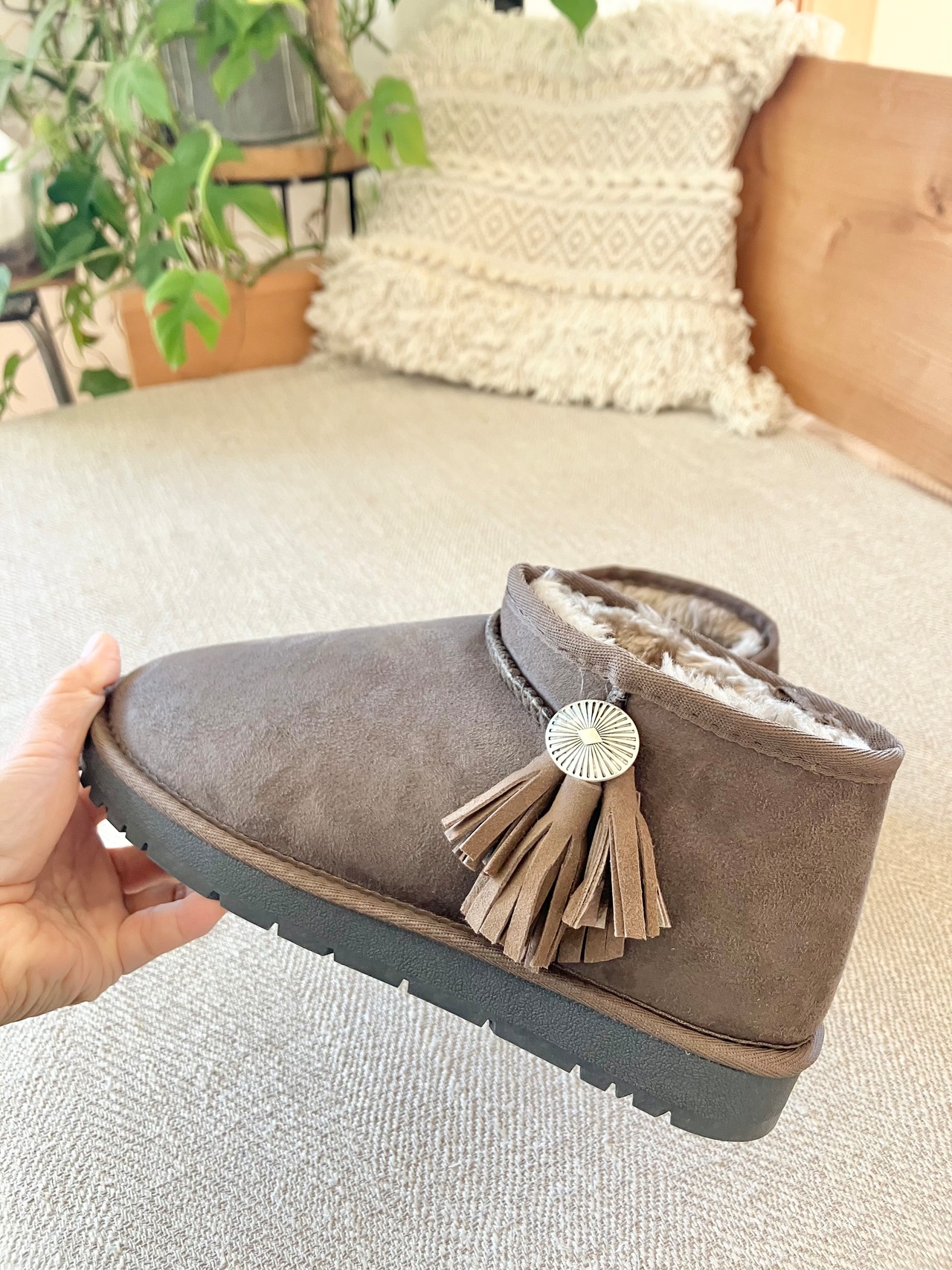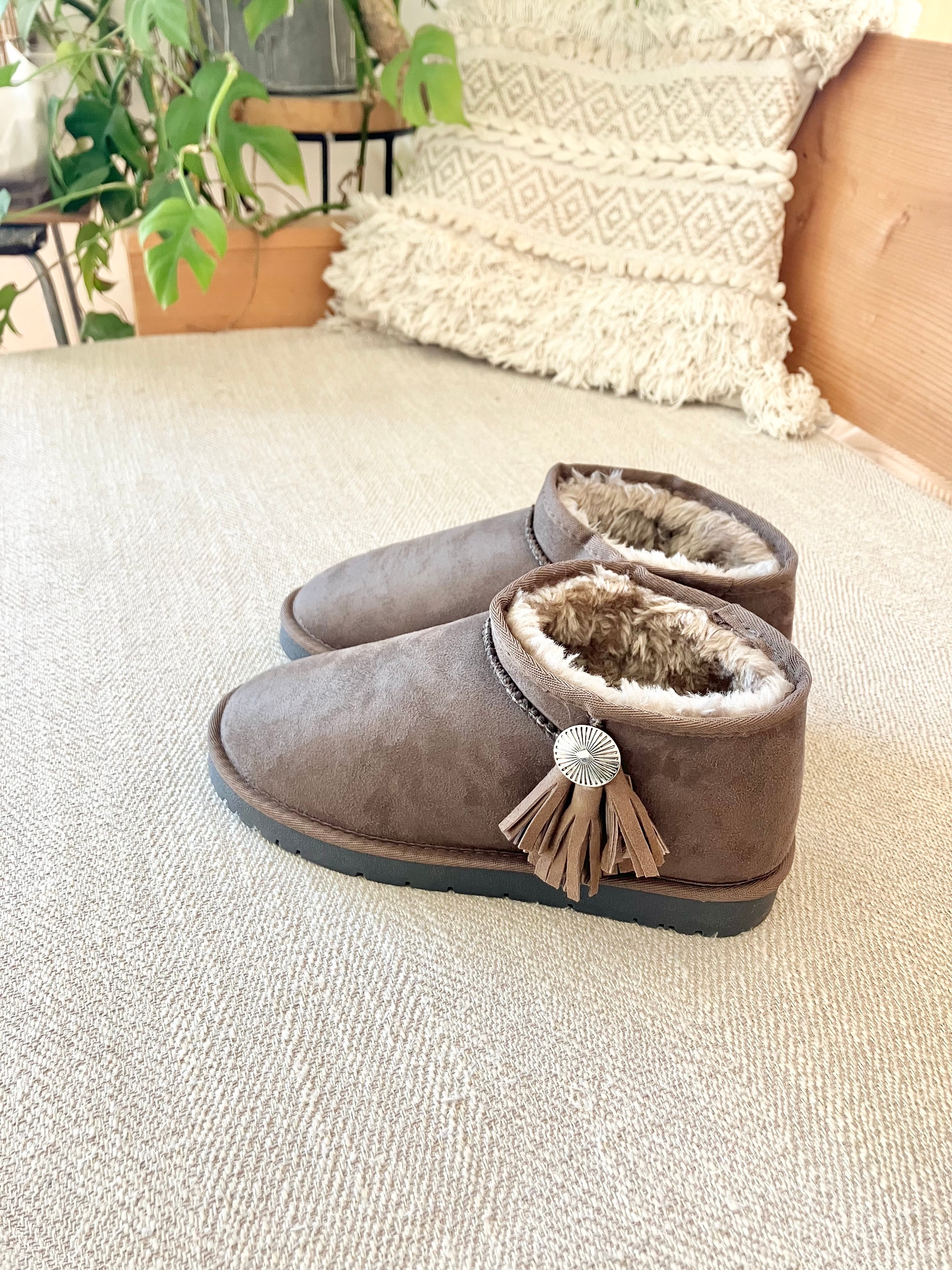 フェイクファーのショート丈のムートンブーツです。