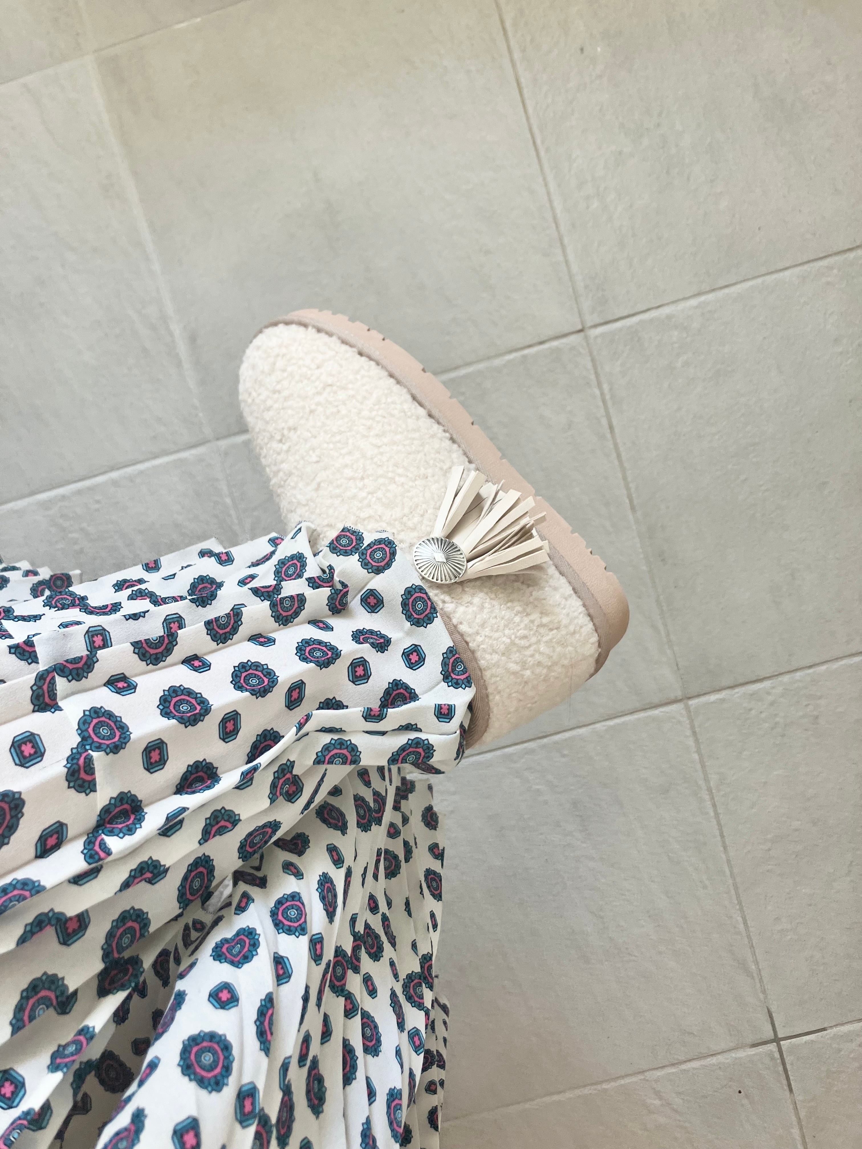細身のパンツをブーツインして合わせたり、長めのスカートでもチラッとサイド飾りが見えて可愛いです。