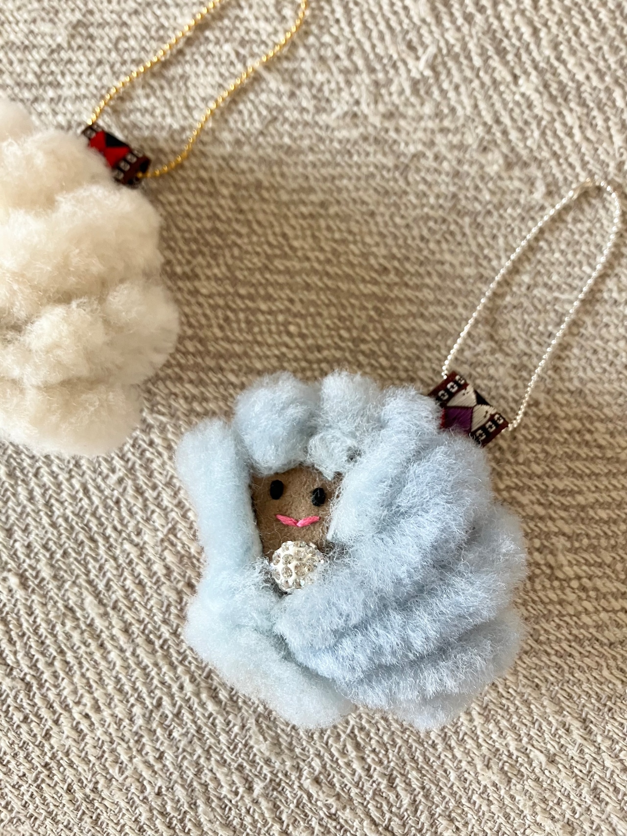 ムートンのハギレを使って、1匹1匹丁寧に作りました。