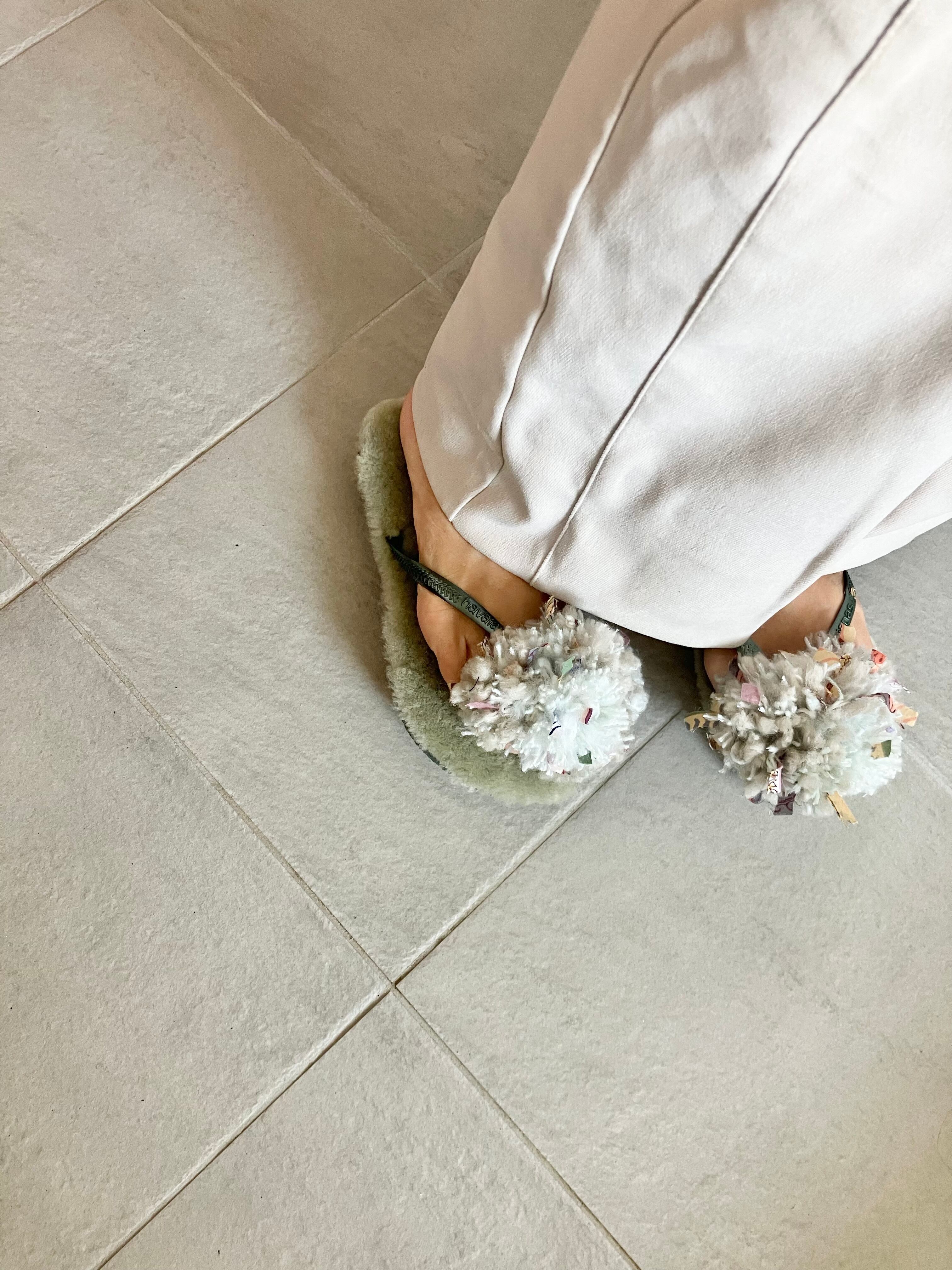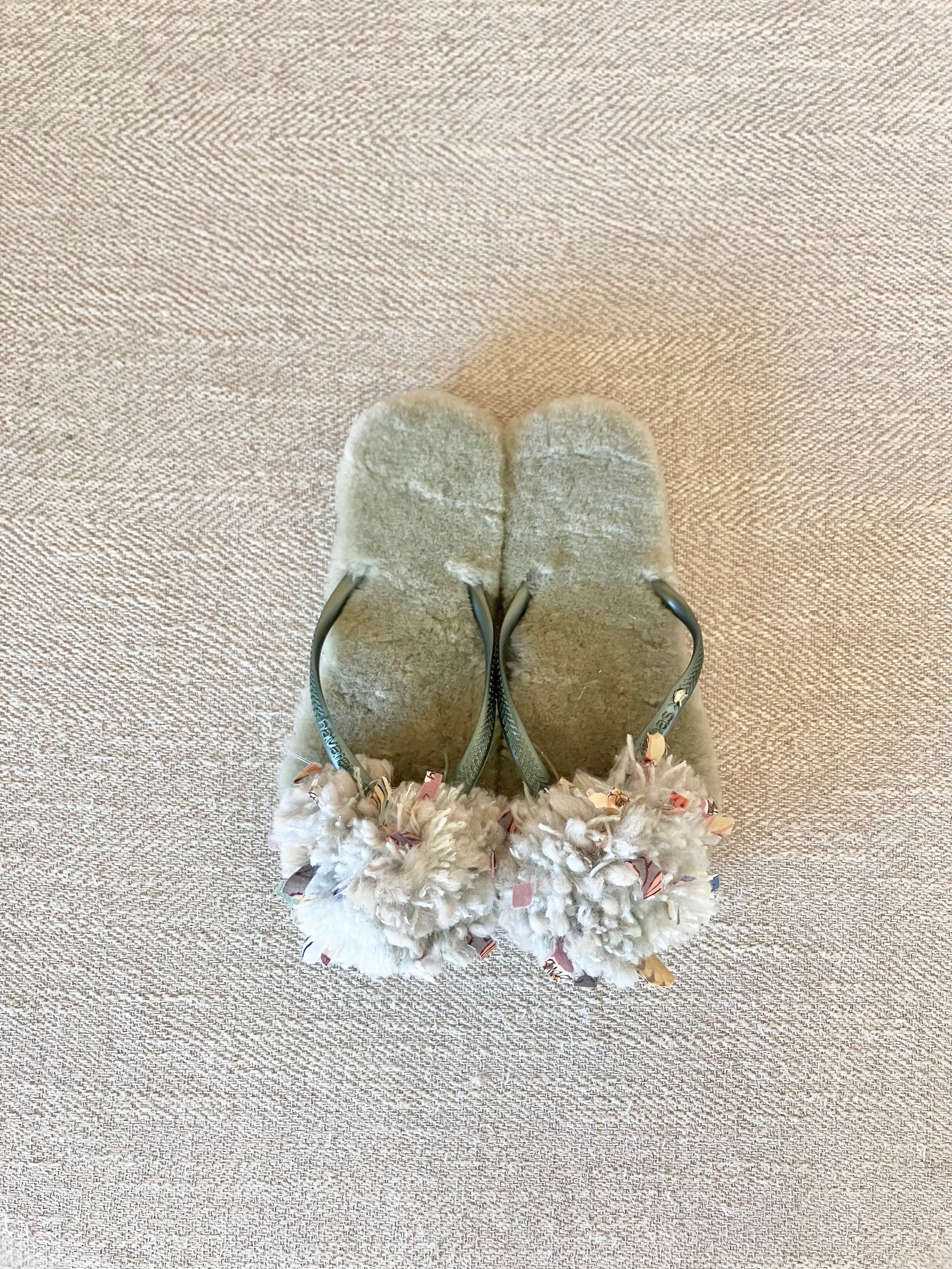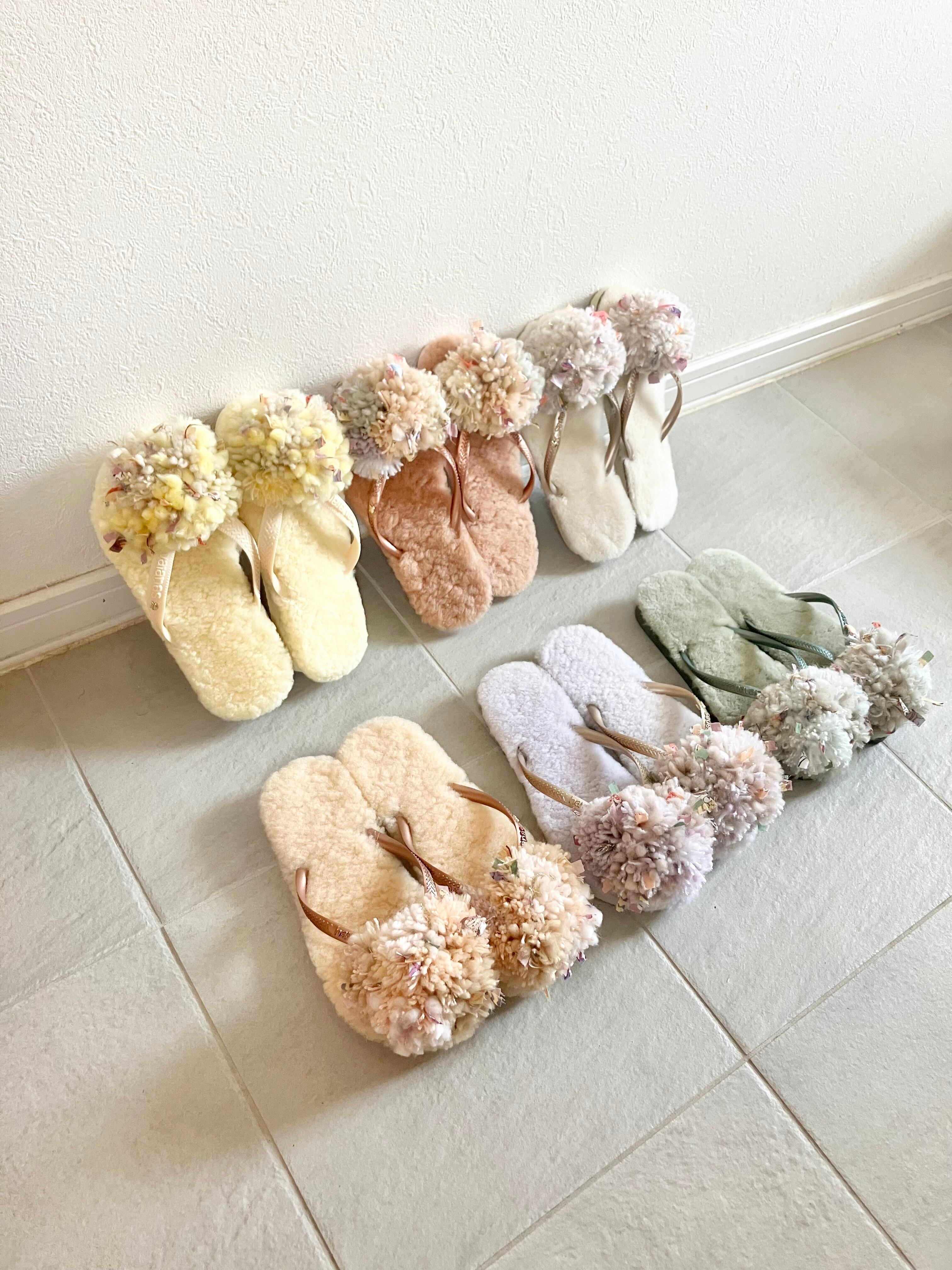 ハワイアナスのベースにオーストラリア産のリアルムートンの中敷がついて、フワフワな履き心地。