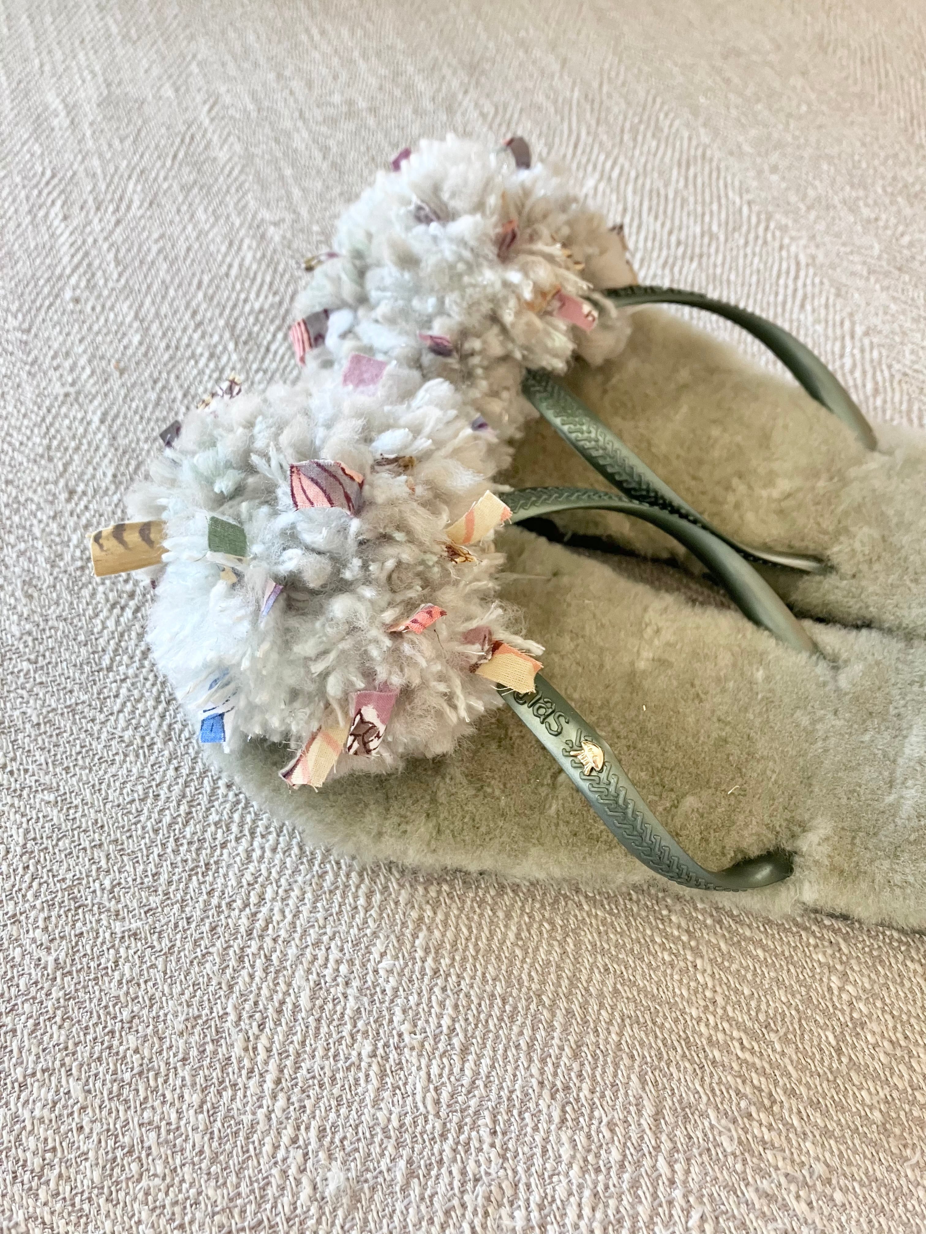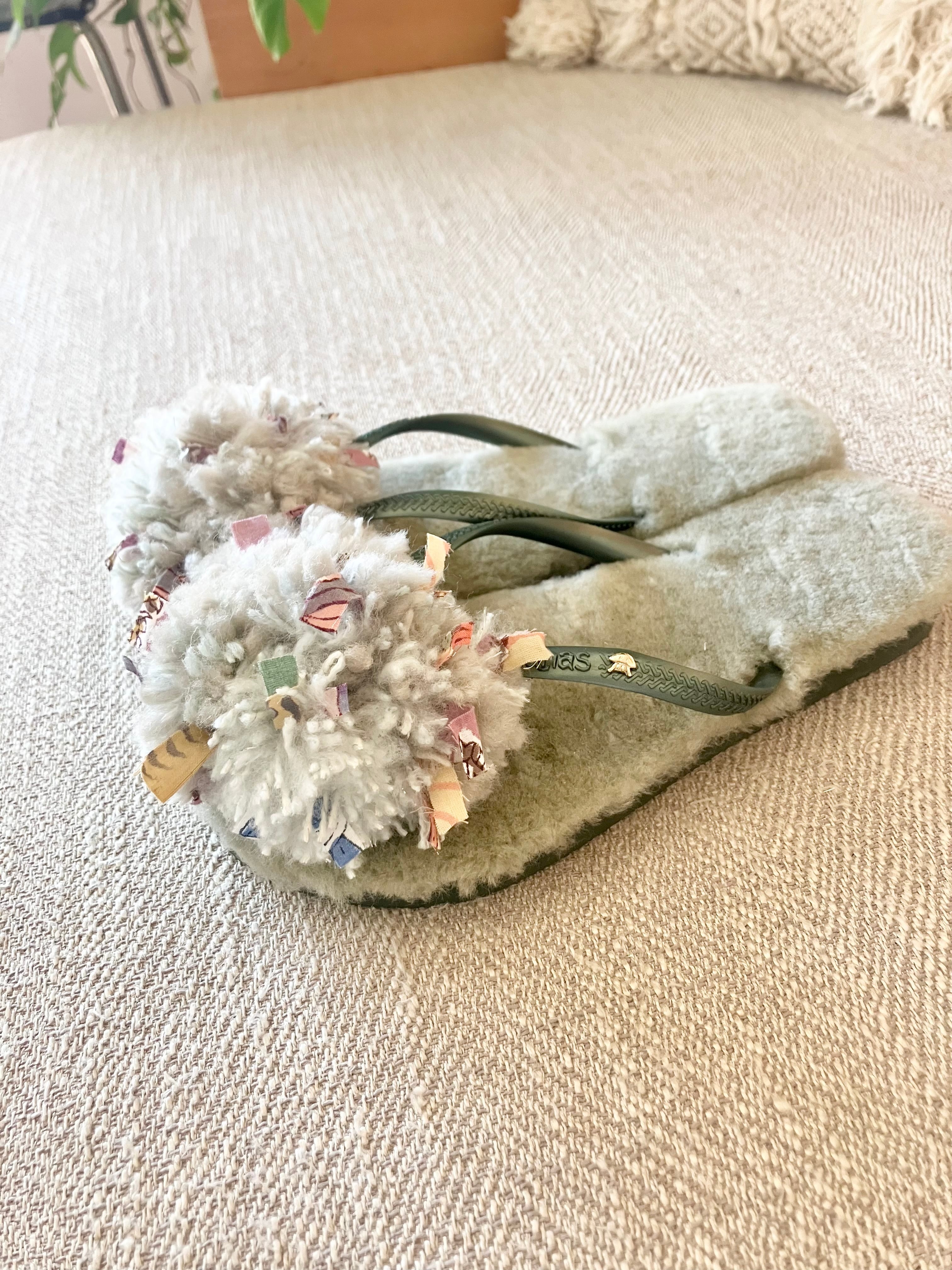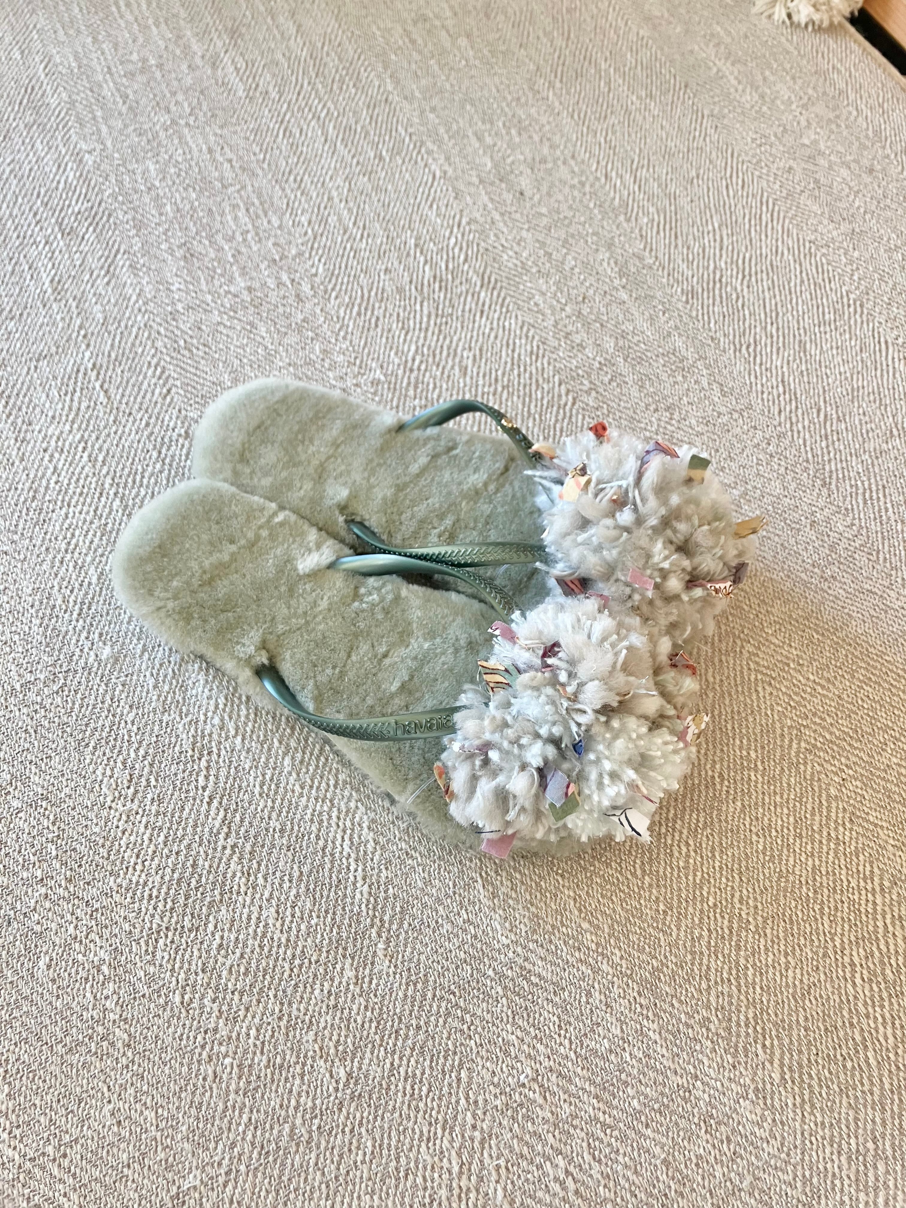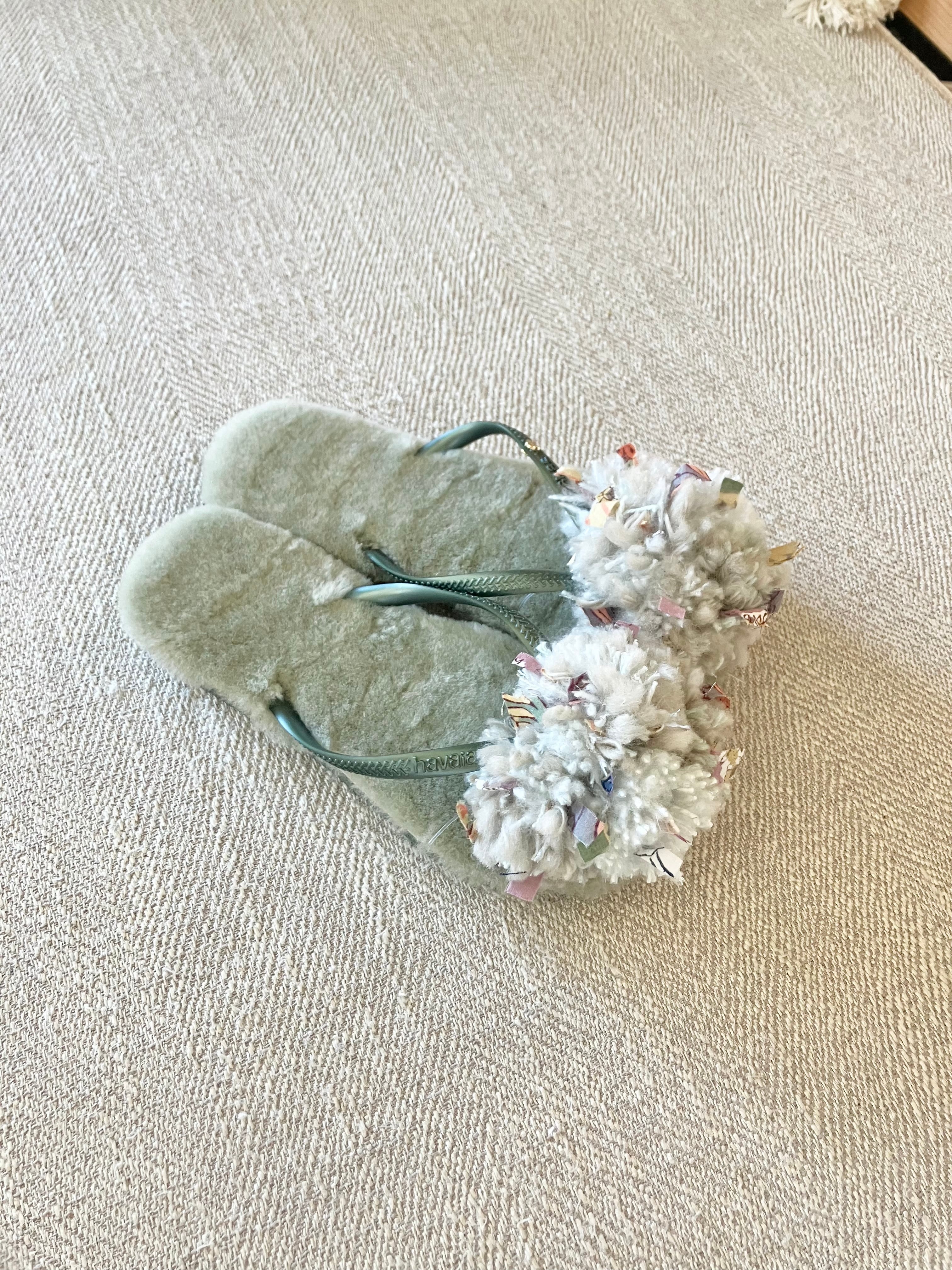 ハワイアナスのベースにオーストラリア産のリアルムートンの中敷がついて、フワフワな履き心地。