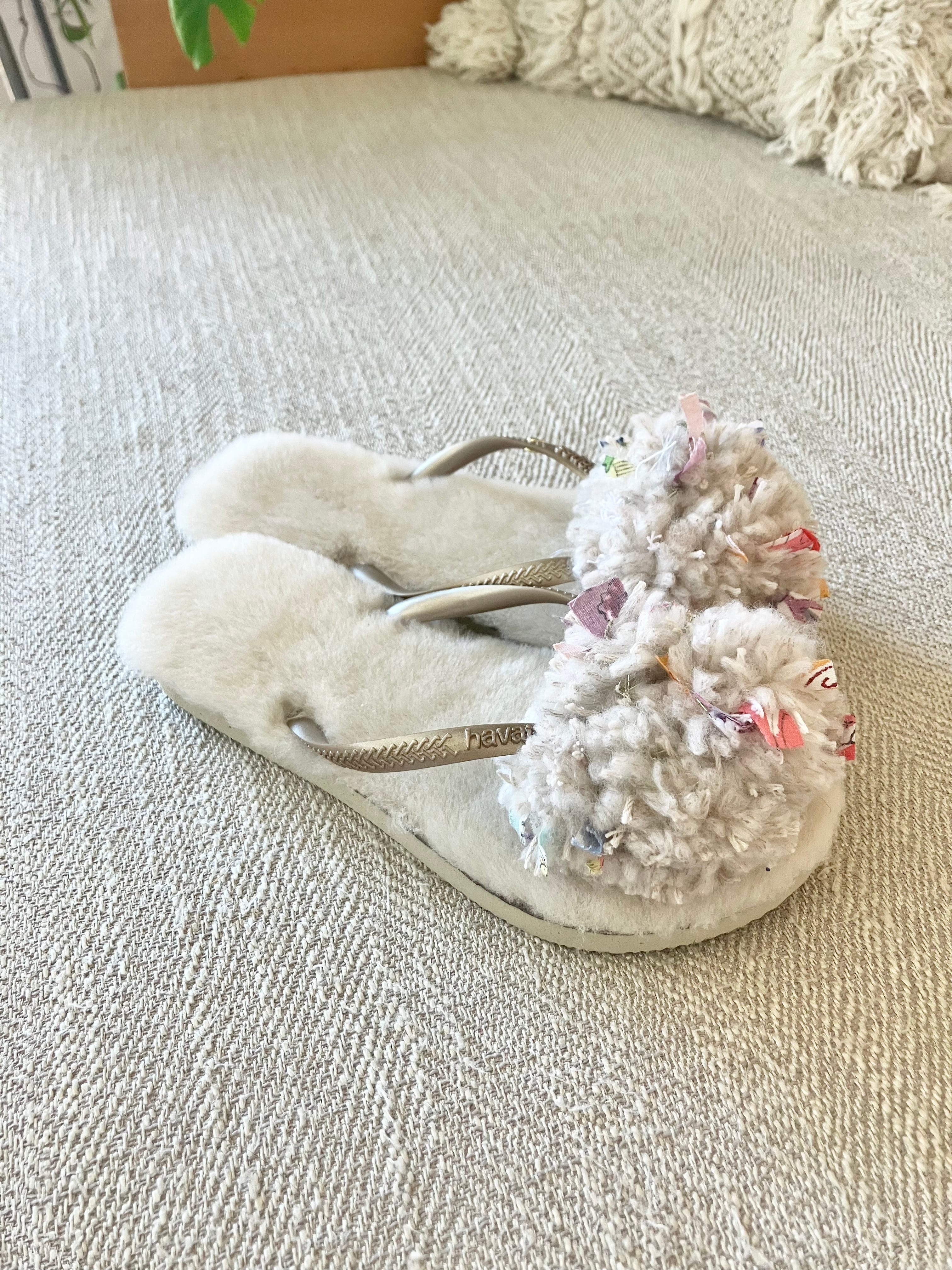 ハワイアナスのベースにオーストラリア産のリアルムートンの中敷がついて、フワフワな履き心地。