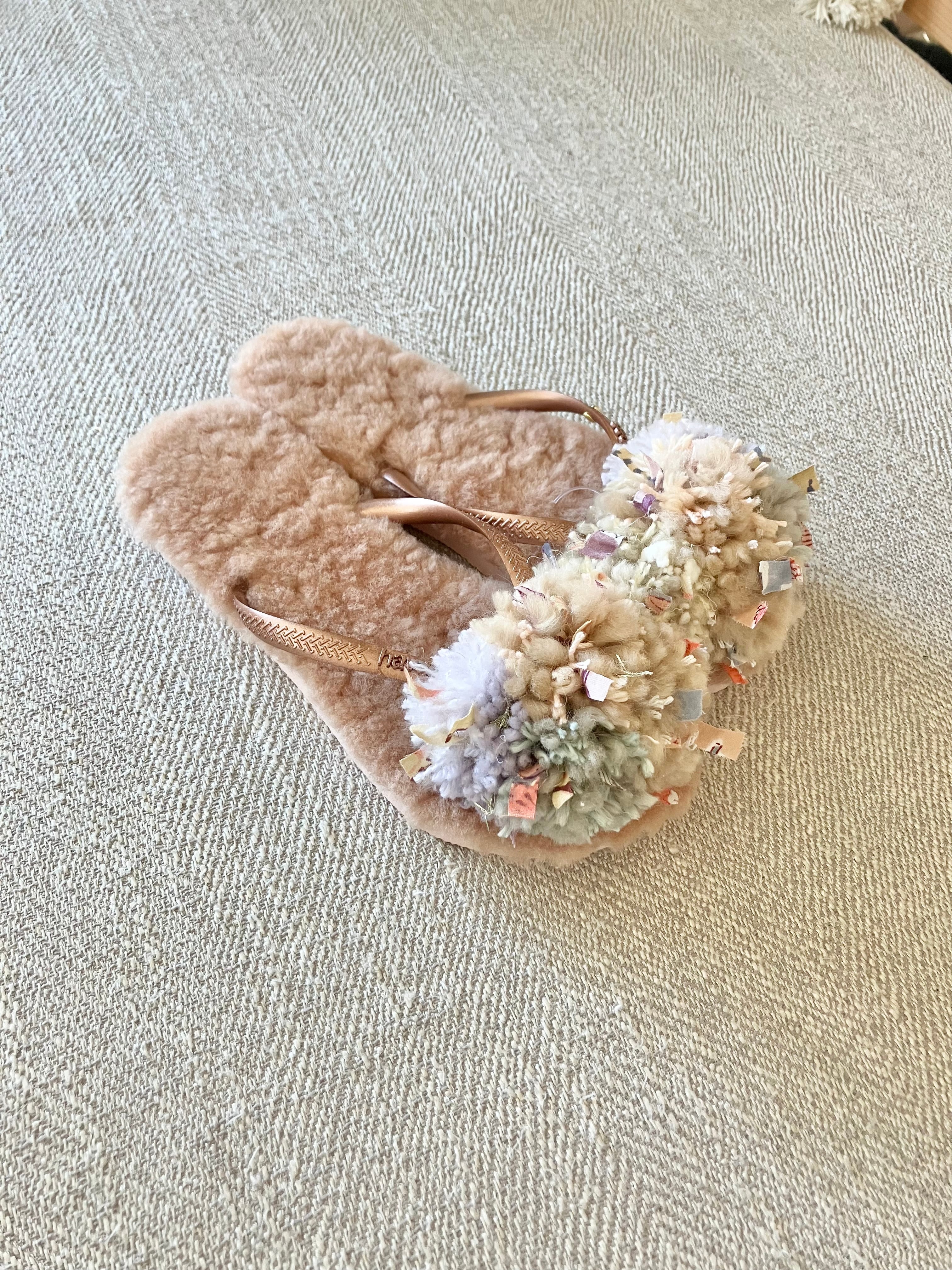 ハワイアナスのベースにオーストラリア産のリアルムートンの中敷がついて、フワフワな履き心地。