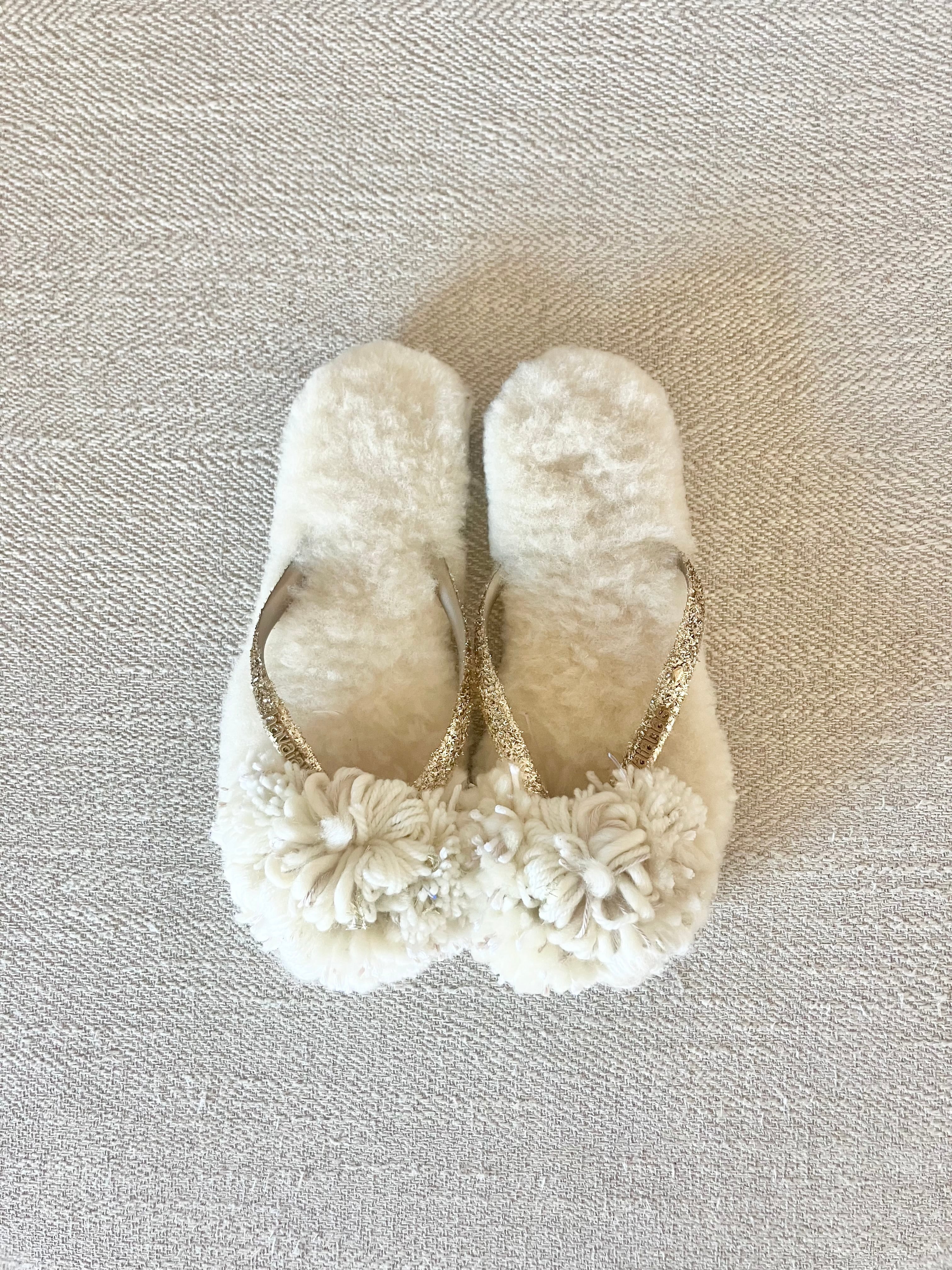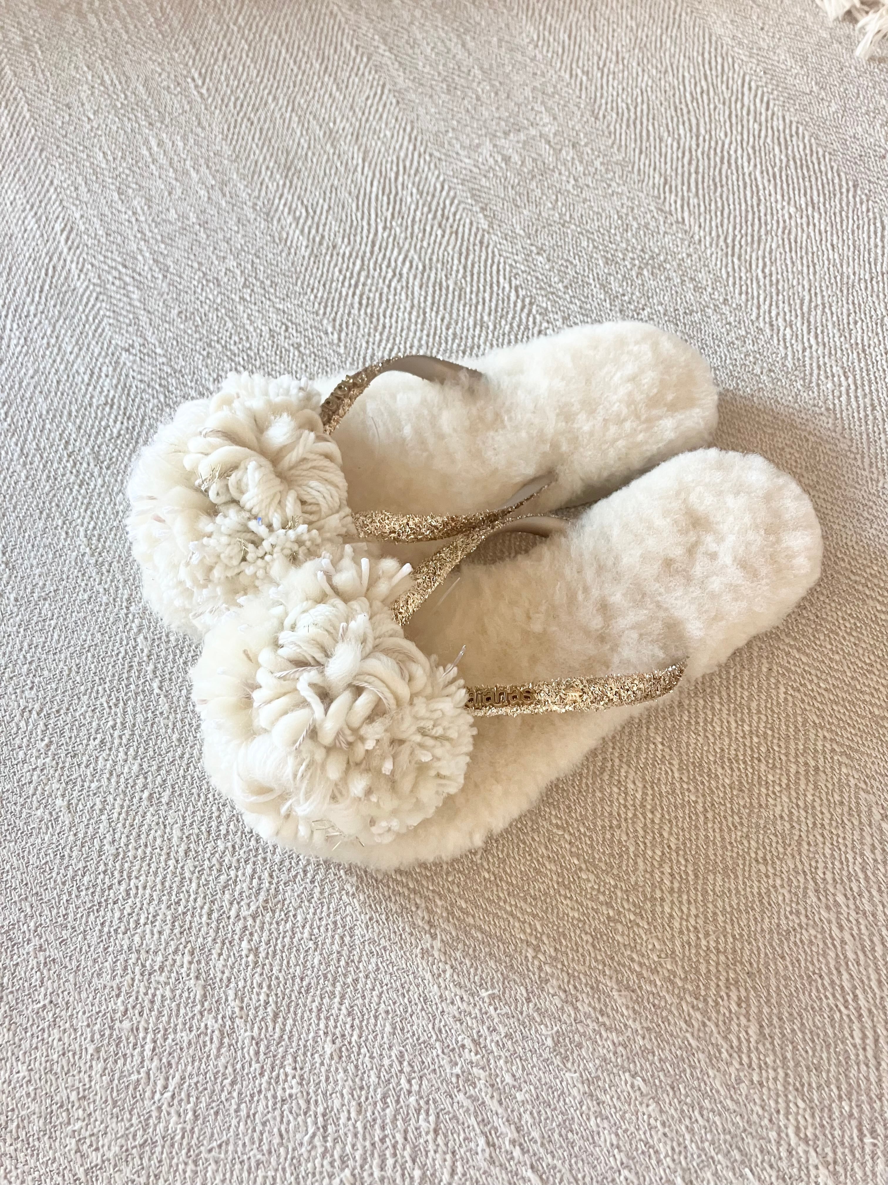 ハワイアナスのベースにオーストラリア産のリアルムートンの中敷がついて、フワフワな履き心地。