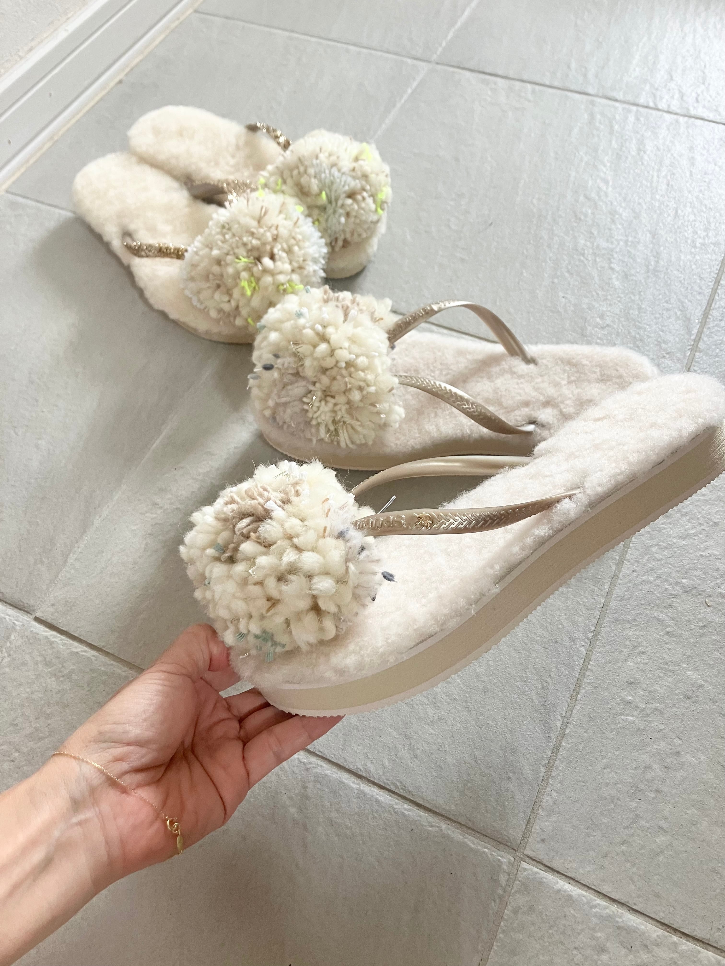 ハワイアナスのベースにオーストラリア産のリアルムートンの中敷がついて、フワフワな履き心地。